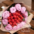 Букет из красных роз и клубники