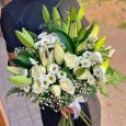 Букет зеленых роз и белых хризантем