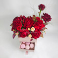 Композиция из 5 макарун и роз