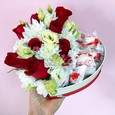 Коробка-сердце с розовыми гвоздиками и розами