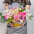 Корзина белых и розовых тюльпанов