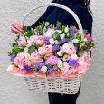 Корзина розовых куст. роз с гипсофилой
